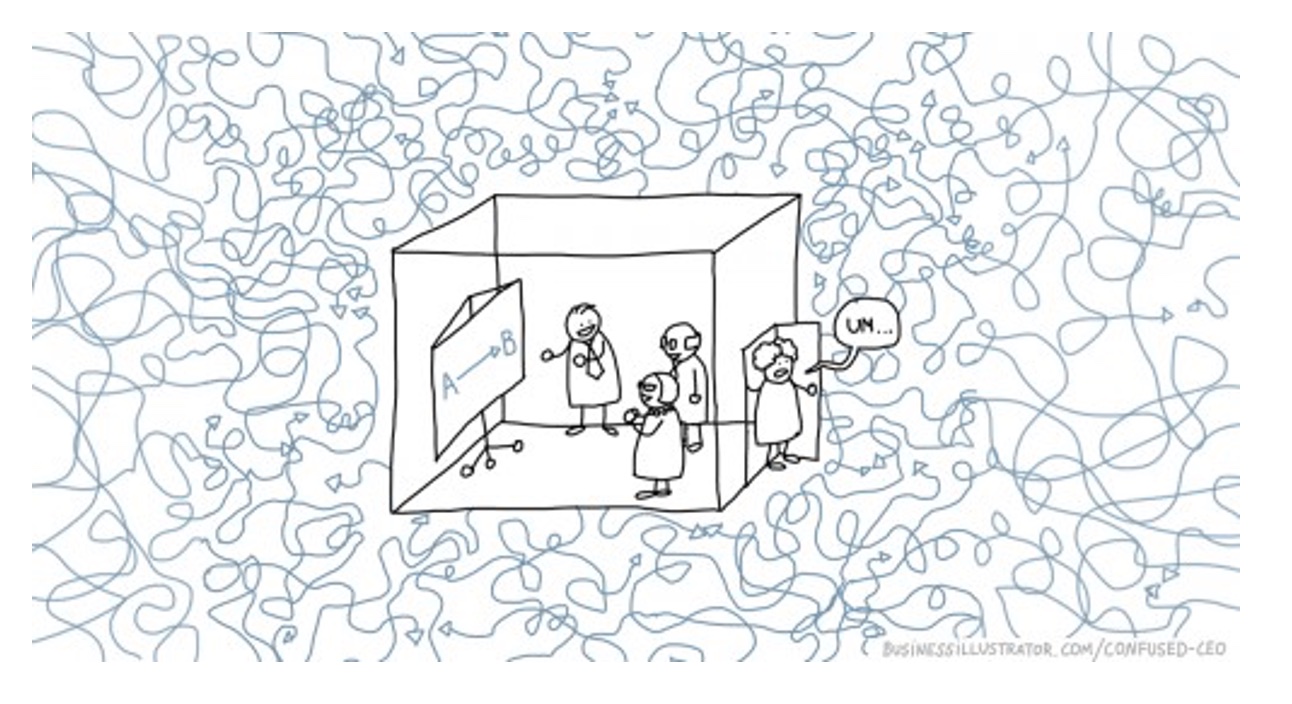 In the sustainability research and policy community, the traditional perspective of simple cause-and-effect relationships is increasingly giving way to an acknowledgment that our world is complex. “Complexity challenges the problem-solving model of separating issues into singularly defined parts and solving for the symptoms.”, states a UN report on risk, for example. Systems-thinking courses are now incorporated in various forms into most university curricula in the environmental and sustainability field. Despite these developments, I want to challenge the prevailing understanding of complexity and systems-thinking and invite you to explore yet another perspective on it.